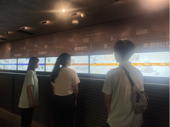 在张冉老师的带领下,学生们依次参观了四大展厅:“传统能源回忆”“当代能源历程”“能源与人类未来”“能源乐园互动空间”。了解从煤炭、石油到太阳能、风能、氢能的演变过程。来自新能源装备技术专业的团长陈写远还主动为同伴讲解风力发电原理,展现出专业素养。他说:“我们不仅是参观者,更是知识的传播者。