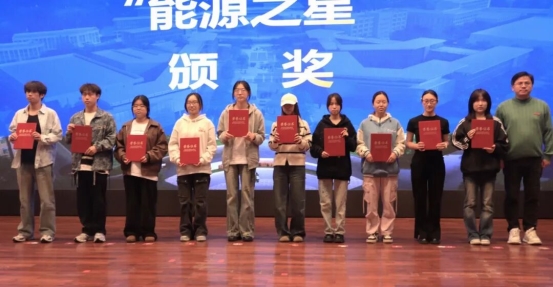 自学院落实五育综合素养提升的教育改革方案以来,2024级学生积极参加各类活动,并涌现出一批品学兼优的模范榜样。为表彰先进,树立典范,特授予马力等10名优秀学生2025年度“能源之星”荣誉称号。林雄为获奖同学颁发荣誉证书。