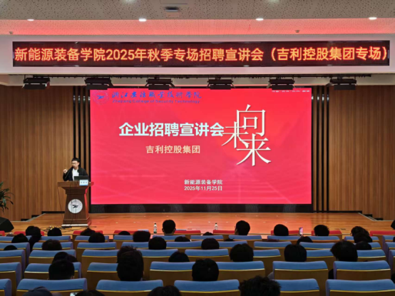 为搭建优质就业桥梁,助力学子精准对接行业头部资源、开启高质量职业征程,11月25日下午,新能源装备学院在介夫楼二楼报告厅成功举办世500强吉利控股集团专场招聘宣讲会。本次宣讲会由学院辅导员刘文晓老师主持,吉利控股集团人力资源部贾陈浩经理主讲,新能源装备技术、无人机应用技术、智能控制技术等相关专业学子踊跃参与,现场座无虚席、互动频繁,充分展现了新时代青年主动求职、追求卓越的良好风貌。