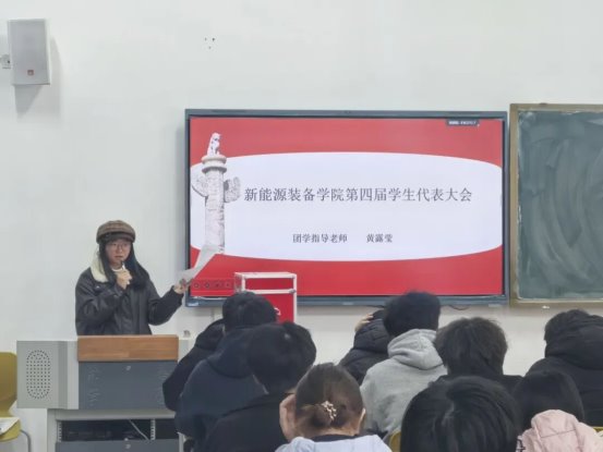 践行初心使命,倾听学子心声。12月5日,新能源装备学院第四次学生代表大会在敷文楼314教室举行。团学指导老师黄露莹、各班学生代表共同参会。本次大会由刘亚琦主持。